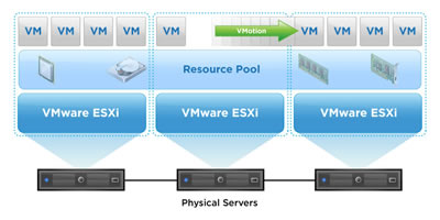 - vSphere vMotion: VMware で稼動中の仮想マシン全体を物理サーバ間で瞬時に移行する機能。ユーザーに影響を与えることなく、ダウンタイムなしでライブマイグレーションを実行できる。