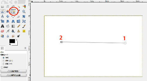に入れる(Win7) - GIMPを起動し「パス」で矢印の始点と終点を描く