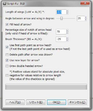 - 矢印を描く為のスクリプト(arrow.scm)を下記のサイトからダウンロードする。