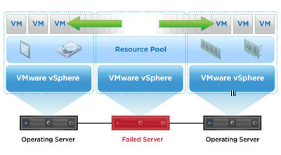 - vSphere HA (High Availability): VMware で物理サーバに障害が発生した場合、影響を受けた仮想マシンを、キャパシティに余裕のある別の物理サーバ上で自動的に再起動させる機能。